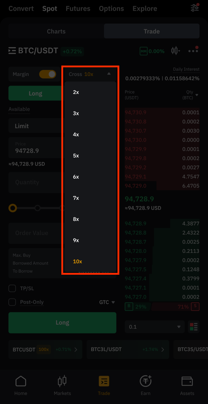 바이비트에서는 최대 10배까지 레버리지를 설정할 수 있으며, 이를 통해 높은 수익률을 노릴 수 있습니다.