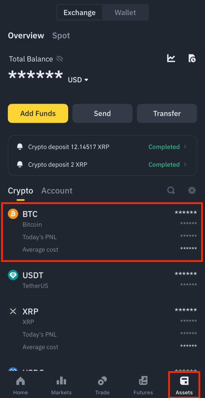1. 바이낸스 앱에서 Assets 선택