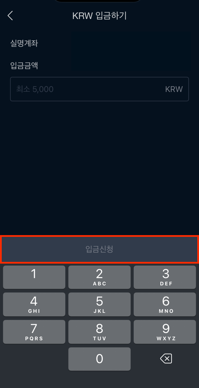 ② KRW 입금을 눌러, OKX로 보낼 리플(XRP)을 매수할 수 있도록, 필요한 금액만큼의 원화를 먼저 입금합니다.