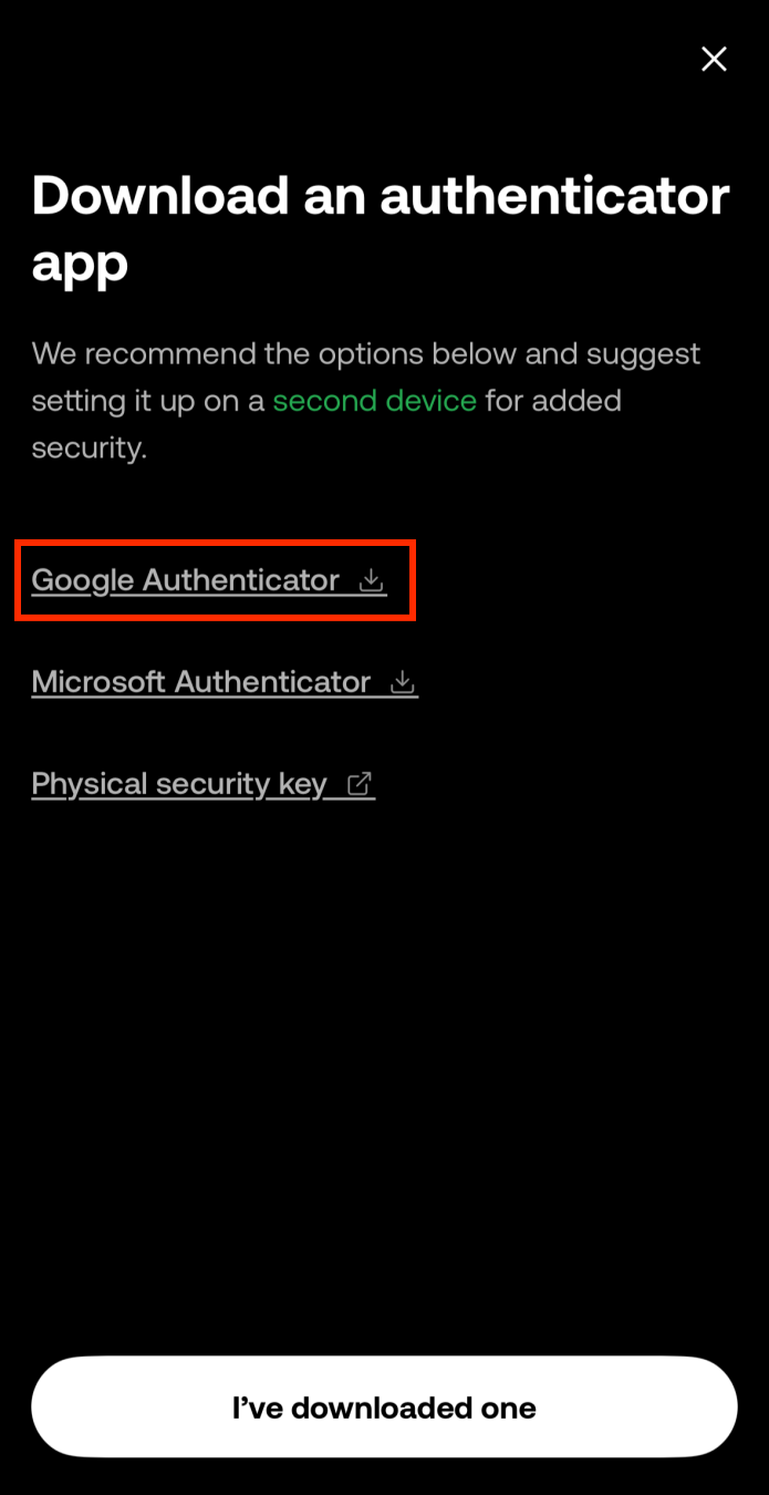 - 어플리케이션 다운로드를 위해 Link authenticator app을 클릭합니다.