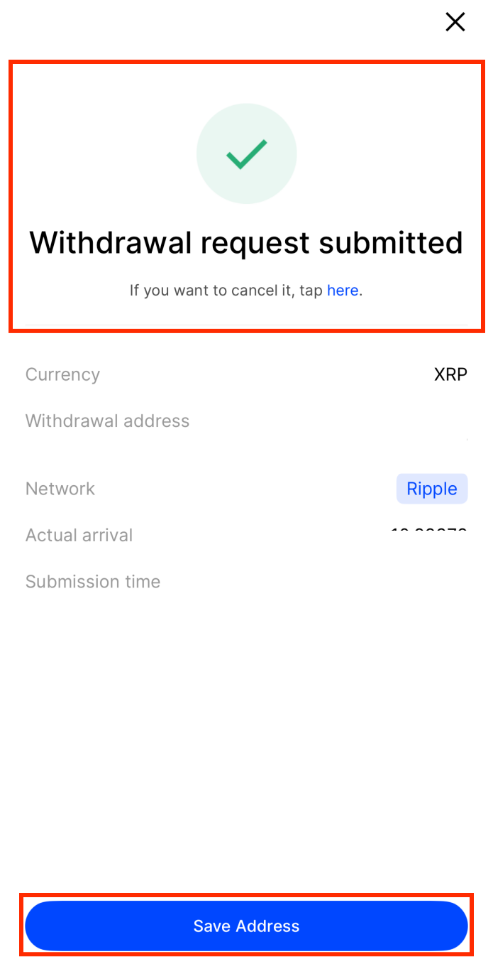- 출금이 완료된 후 Save Address를 눌러 입금 주소를 저장해 놓으면 다음 출금에 더욱 편리합니다.