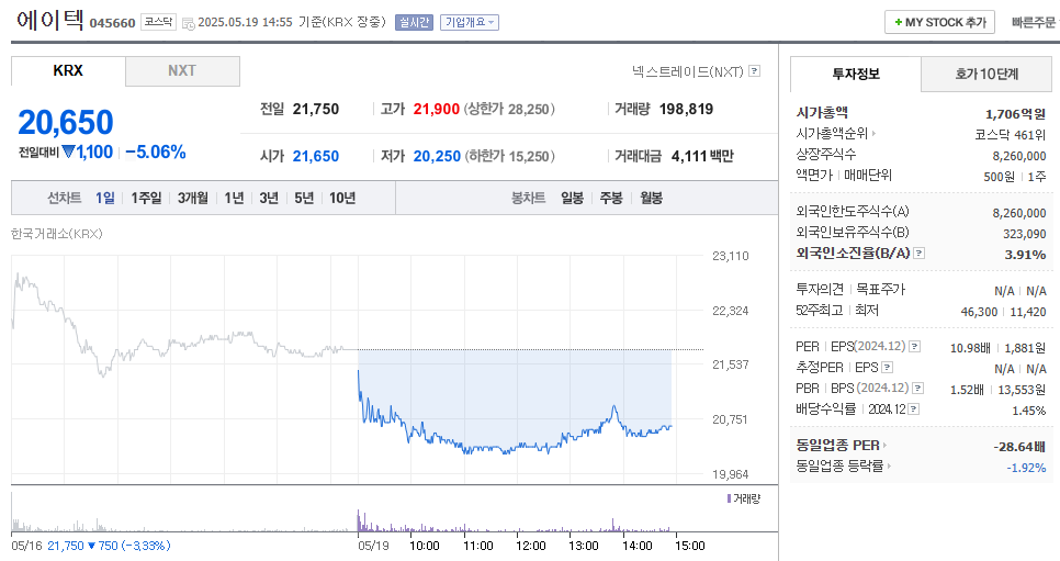 - 주가 흐름: 에이텍과 거의 동일한 방향성으로 움직임