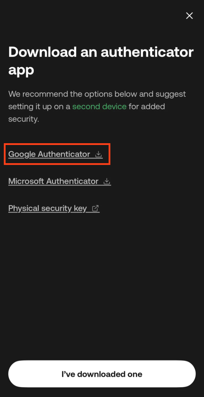 - 이어서 Google Authenticator 다운로드 표시를 클릭한 후 어플을 다운로드합니다.