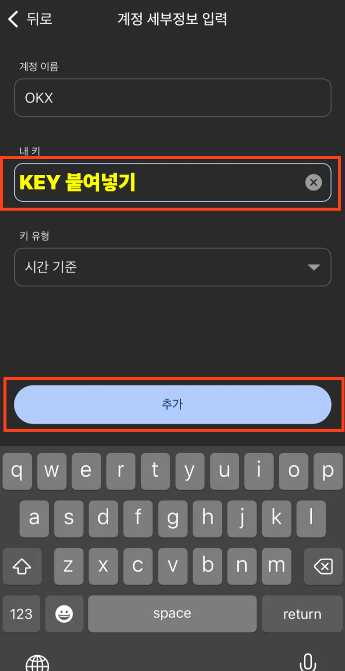 - OKX 앱으로 돌아와 복사한 숫자를 붙여넣습니다.
