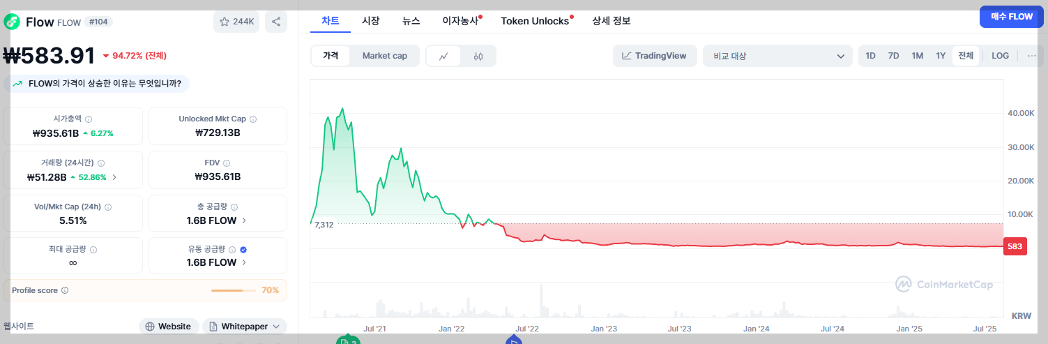 결론적으로 FLOW는 단기 시세 변동성보다는, NFT·콘텐츠 시장 성장과 함께 중장기적으로 가치를 반영받을 가능성이 큰 프로젝트입니다. 특히 대형 파트너십 갱신·신규 IP 온보딩 등 모멘텀 이벤트가 있을 경우, 시장 주목도가 빠르게 회복될 수 있습니다.