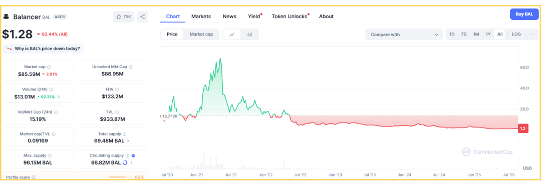 BAL은 중앙화 거래소뿐만 아니라, Balancer 자체 DEX에서도 유동성이 풍부하게 형성되어 있어, 거래 접근성과 활용성이 모두 뛰어납니다.