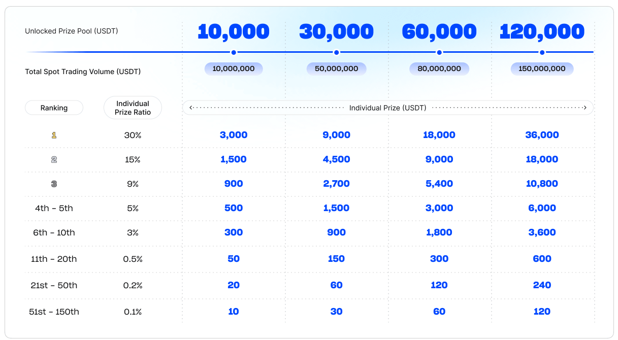 • Spot Championship – 총 240,000 USDT 상금 풀