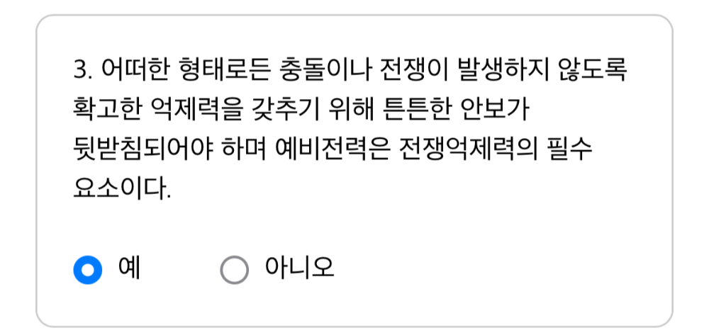 3. 어떠한 형태로든 충돌이나 전쟁이 발생하지 않도록 확고한 억제력을 갖추기 위해 튼튼한 안보가 뒷받침되어야 하며 예비전력은 전쟁억제력의 필수 요소이다.
